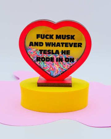 Fuck Musk And His Tesla Heart Shaker Home Decor 3