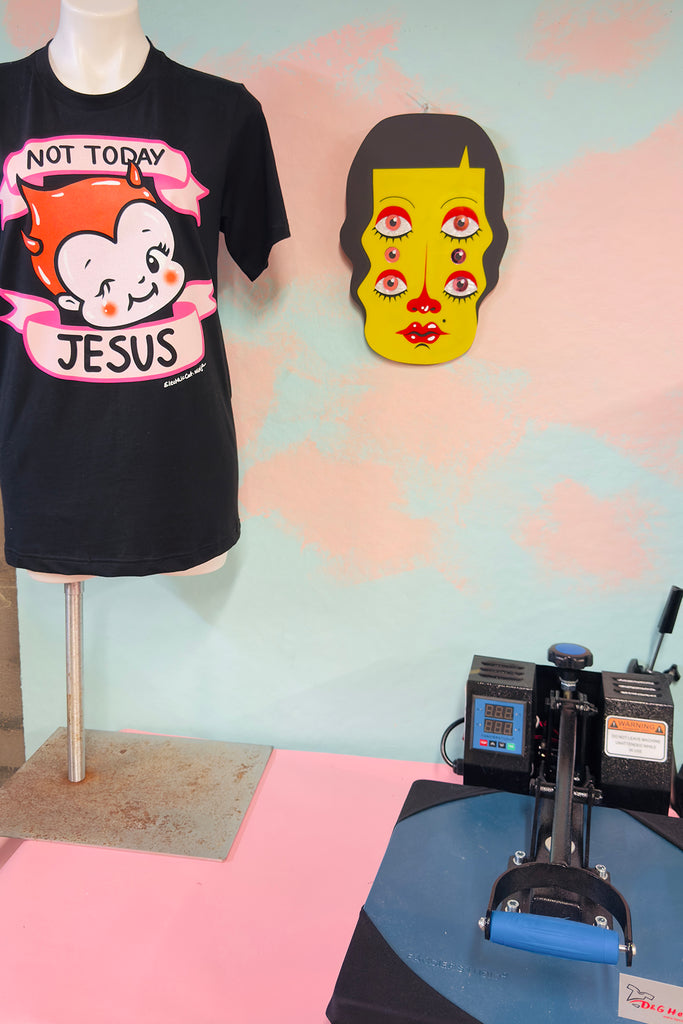 Measuring approximately 10 x 14 inches, this mixed media piece is lightweight yet striking — a perfect statement for collectors of pop surrealism, modern oddities, or anyone who loves art that dares to stand out.