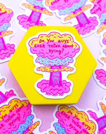 Make your laptop, water bottle, or car window unique with this 2.75" Barbenheimer sticker! Show off your punny side with some sly wordplay by adding this eye-catching decal to the mix. Get your style buzzing with this fun and quirky Barbenheimer sticker!