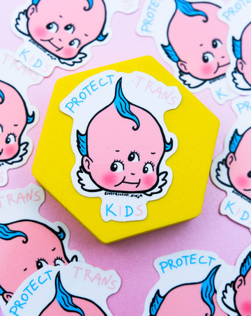 Show your support with this 2.75" Protect Trans Kids sticker! Stand up against transphobic discrimination with this eye-catching sticker – make a statement wherever you decide to rock it. Peep the design—it's sure to grab attention!